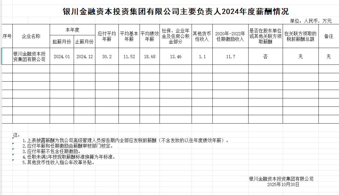 銀川金融資本投資集團(tuán)有限公司企業(yè)負(fù)責(zé)人2024年度薪酬情況