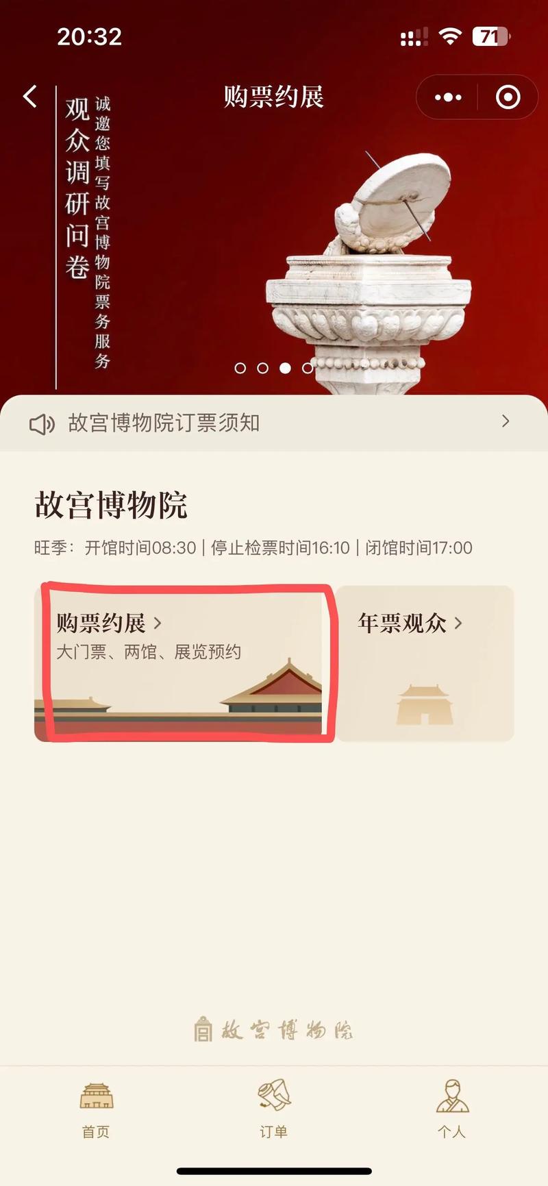 北京故宮官方售票渠道已經(jīng)開通,游客可以通過官方網(wǎng)站進(jìn)行在線購票,購票流程如下: