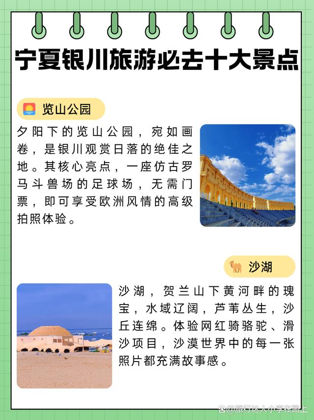 就是銀川市內(nèi)必去的五大景點(diǎn),每個(gè)景點(diǎn)都有其獨(dú)特的魅力和特色,你可以感受到歷史與現(xiàn)代的交融,欣賞到自然風(fēng)光和城市景觀的完美融合,希望你在銀川的旅行中能夠充分領(lǐng)略到這座城市的精彩和魅力。
